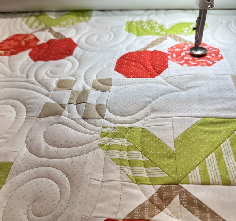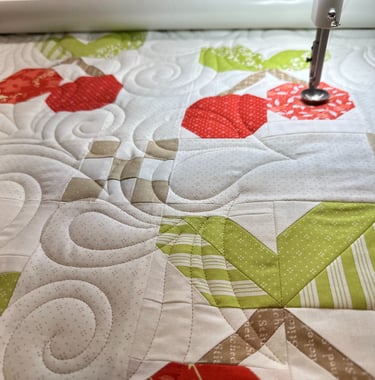 The same might be true of my sewing endeavors. Quilt tops aren't always perfect, but I am in love with them and want to use them. So, whether it is a vintage restoration, a new design for the longarm or a family t-shirt quilt, they are worth the effort to finish and love. If you have a few of those quilt tops waiting to be finished, I'd love to help. Don't get me wrong ... because who isn't a sucker for bright and shiny new fabric lines and the beautiful quilts they create? I find great joy in working with customers to get those finished as well.